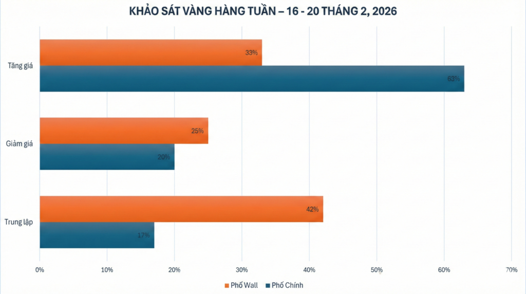 • 33% dự báo vàng tăng tiếp trên 5.000 trong tuần tới